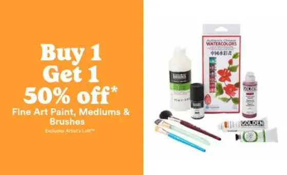 Save now! Shop in store and buy 1, get 1 50% off on fine art paint, mediums & brushes.