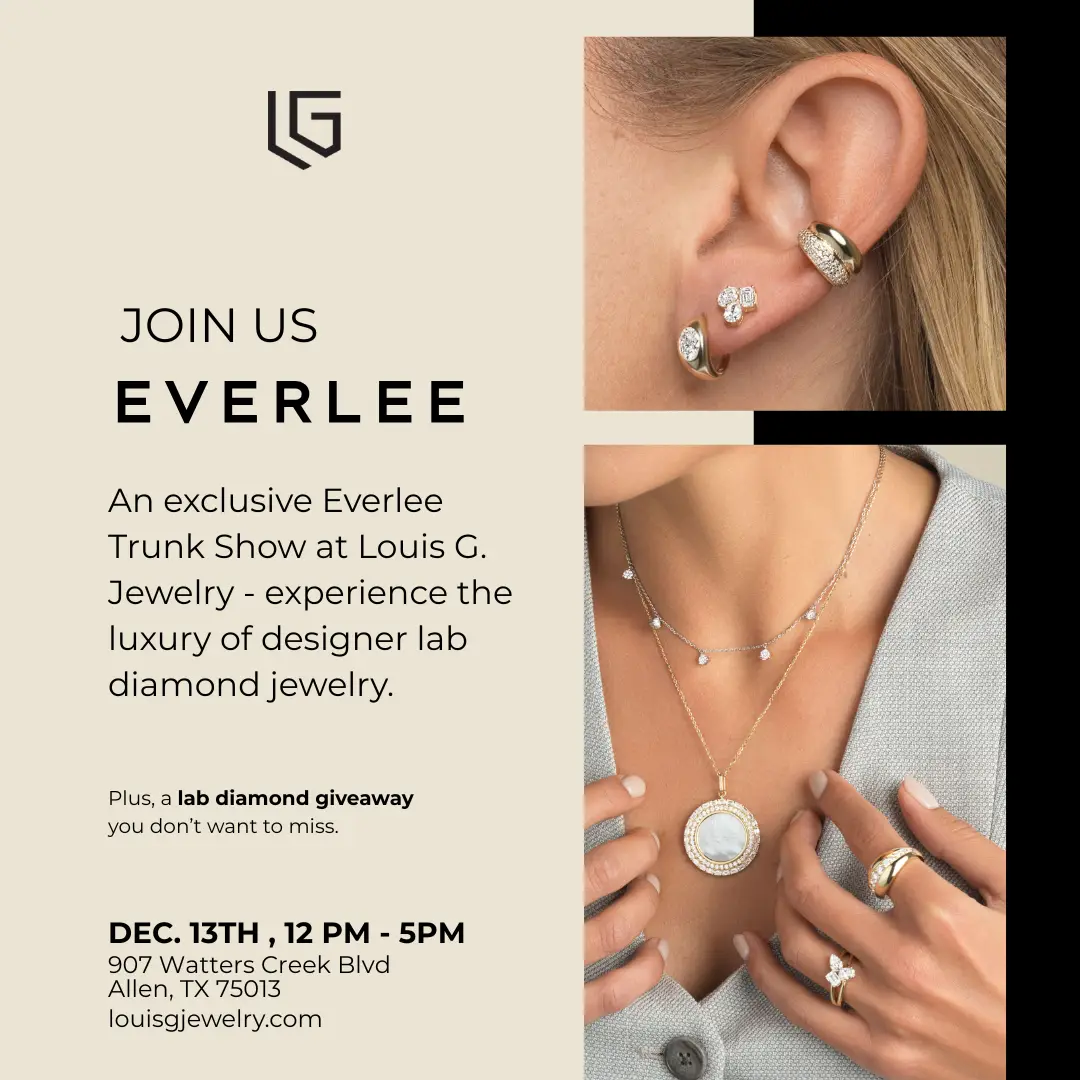 Come check out the latest collection of stunning Everlee Jewelry at our trunk show hosted at Louis G. Jewelry!